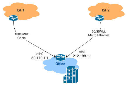 We tried a symmetric 30/30 Metro Ethernet connection, but it just wasn’t enough for our downstream demands. A 100/3 connection just isn’t enough for our upstream demands. So, what can we do? Combine them into a 100/30 one! but how?